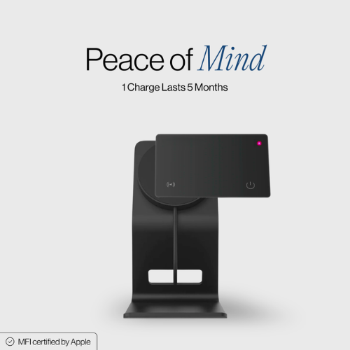 Oui. La carte se recharge sans fil pour plus de simplicité. Posez-la sur un chargeur compatible au besoin. Une charge complète dure jusqu’à 5 mois, avec un voyant DEL qui change de couleur pour l’indiquer. Réutilisable à de multiples reprises — plus économique.