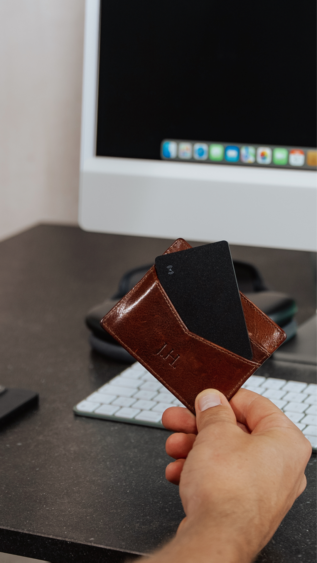 La carte de suivi utilise le réseau Localiser d’Apple (Find My) pour suivre en toute simplicité votre portefeuille et vos autres essentiels. Il suffit de l’associer à votre appareil iOS via l’app Localiser et vous pourrez retrouver vos effets personnels à tout moment.